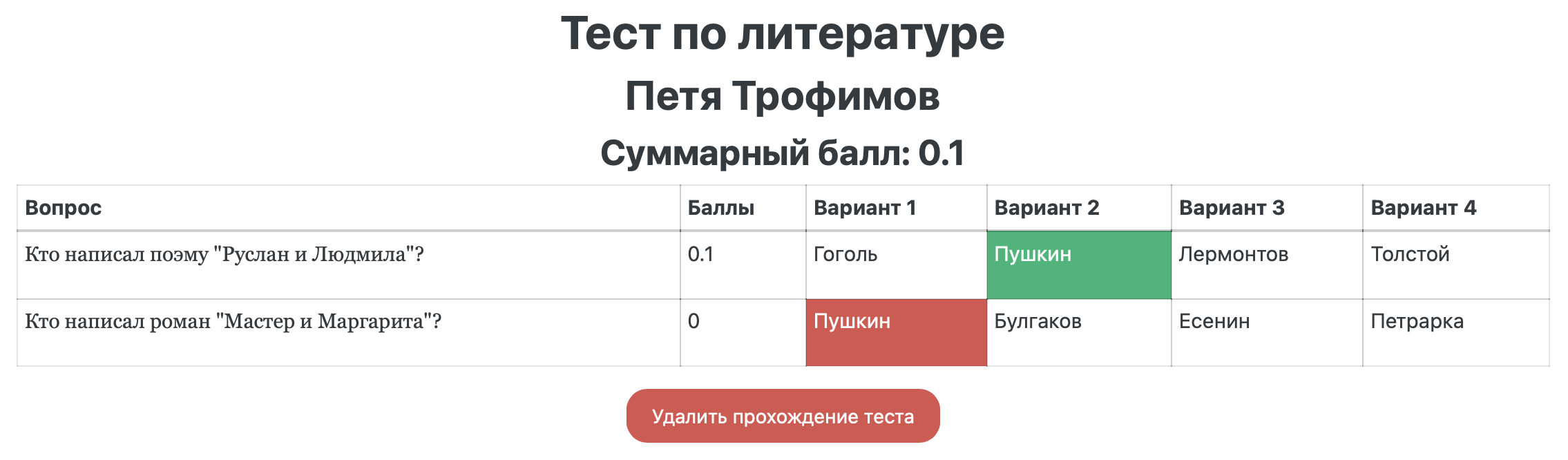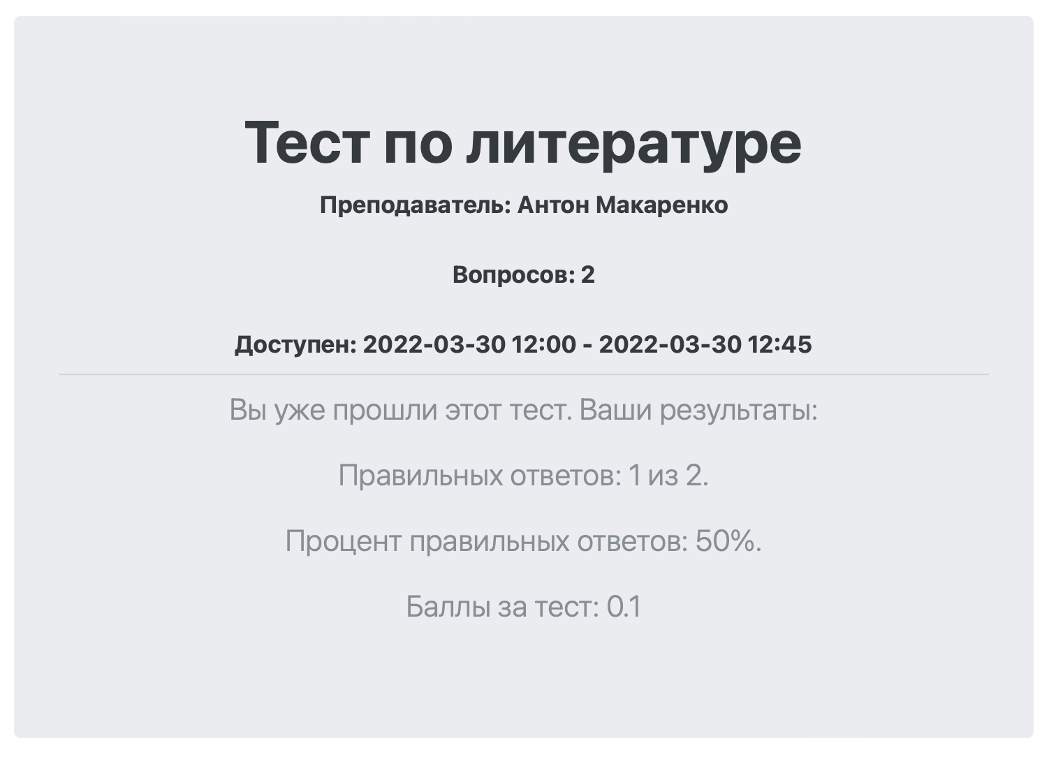 После прохождения теста ученики и студенты могут видеть свои результаты: